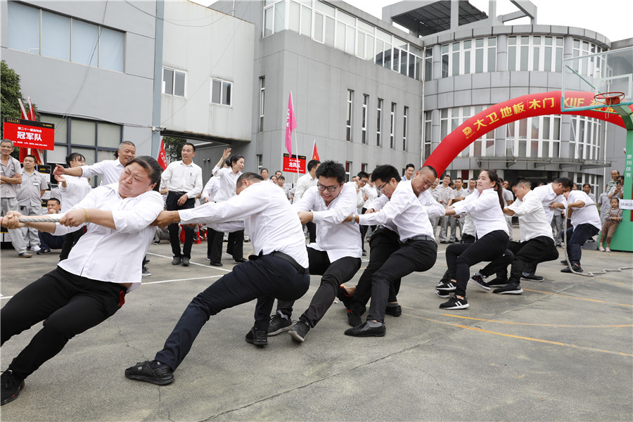 步履铿锵,气势如虹迈着时代的步伐,踩着音乐的节拍在国旗护卫队的护卫下鲜艳的五星红旗缓缓进入操场,参加此次运动会的共有龙凤队,扬帆队,冲锋队,冠军队,梦之队,群英队,金盾队,狂浪队八支队伍,本次趣味运动会共分8个项目,名称分别为:士气展示、拔河、集体跳长绳、过河接力赛、带球赛跑、赶篮球接力跑、抛绣球、花样接力。新颖滑稽的比赛项目,使整场比赛充满了娱乐性,员工的参与热情十分高涨,整个活动精彩纷呈,每个人脸上都洋溢着笑容,极大的缓解了职工的压力,放松了心情。
