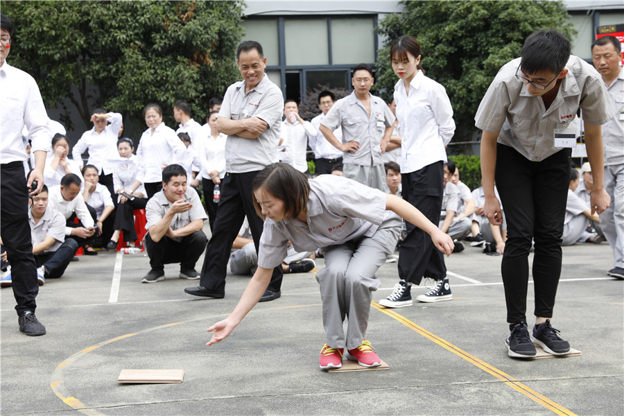 拼尽全力的接力赛...如此缤纷多样的展示,呈现着必一(中国)家人不断拼搏的风貌,上场的家人们有的是夫妻同心、其利断金;有的是兄弟同步、共同进退;还有的是姐妹上场、配合默契。参加比赛的职工们全力以赴,观众们为他们喝彩加油,当有选手发生有趣的失误时,现场更是响起一片善意的笑声。