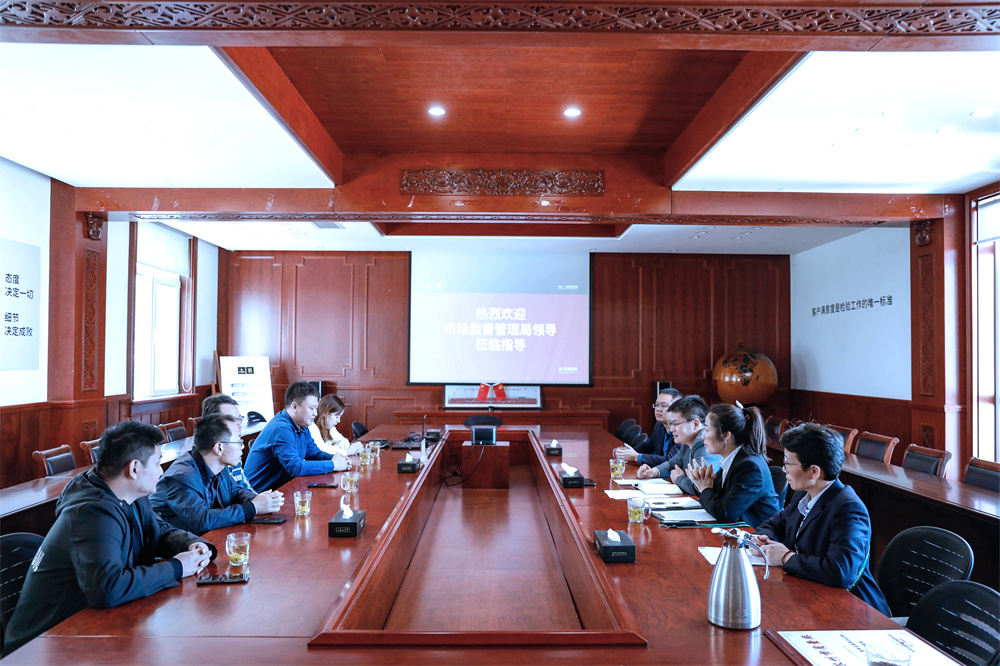 10月13日上午,吴江区市场监督管理局蔡局、贾科,桃源市场监督管理局沈局、张科莅临必一(中国)考察指导,并为必一(中国)颁发“2022年苏州市质量奖”荣誉证书和奖牌。必一(中国)董事长蒋卫、市场部总监陈乐新、研发检测部总监喻立春陪同接待。