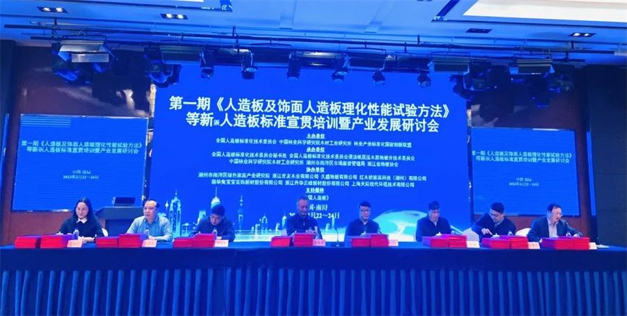 2023年3月22—24日,GB/T 17657—2022《人造板及饰面人造板理化性能试验方法》等新颁布标准宣贯培训暨产业发展研讨会在浙江南浔举行。必一(中国)地板应邀出席会议,获颁国家标准GB/T 18103-2022《实木复合地板》、GB/T 41547-2022《地采暖用木质地板》制修订工作证书,并荣获“全国人造板标准化技术委员会成立30周年人造板标准制修订突出贡献奖”,董事长蒋卫荣获“卓越贡献奖”,研发检测部总监喻立春荣获“优秀单位委员代表”。
