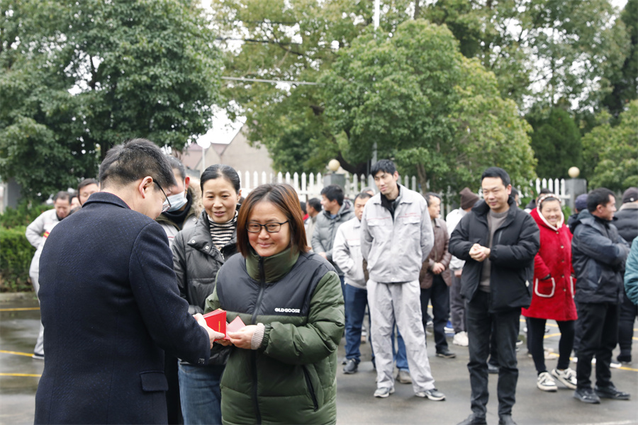 总经理蒋方致辞:“新年新气象,消费习惯的改变,市场对我们的要求越来越高,作为生产者就一定要保证产品质量、交期、并且做好服务,为前端营销经销商提供有力的支撑。当前市场行情下,我们更要从小的细节方面开始,多注意多去为消费者着想,包括很多安全标准、执行标准,一定要自始至终严格要求自己,最后祝我们2024年工作顺利、生活美满。”